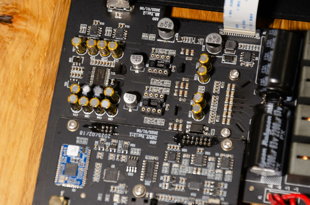 Hier wird’s spannend: Anders als bei Menschen kann man dem A80 tatsächlich eine “Persönlichkeitstransplantation” verpassen. Die verbauten NE5532-Operationsverstärker sind solide Standardkost, aber weit entfernt vom Optimum. Mit etwas Schraubergeschick lassen sie sich austauschen – mit teils dramatischen Klangverbesserungen.