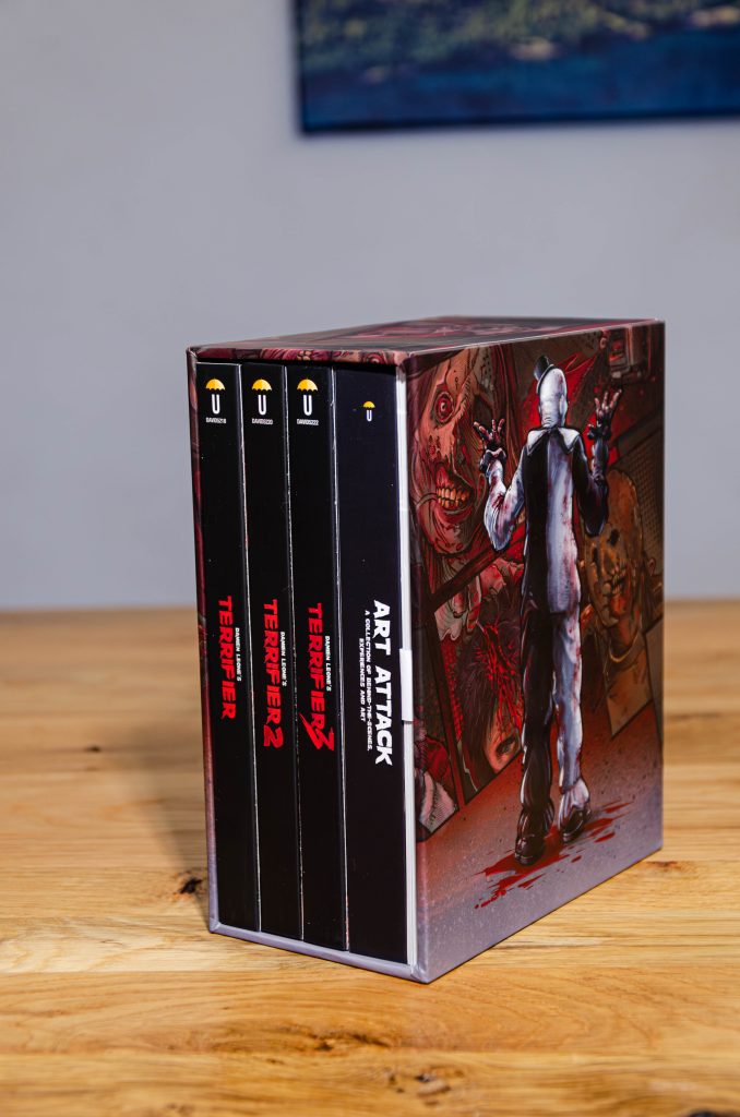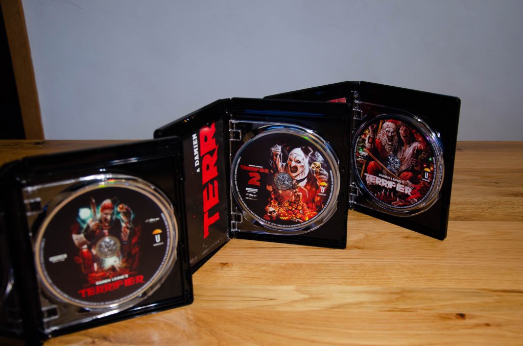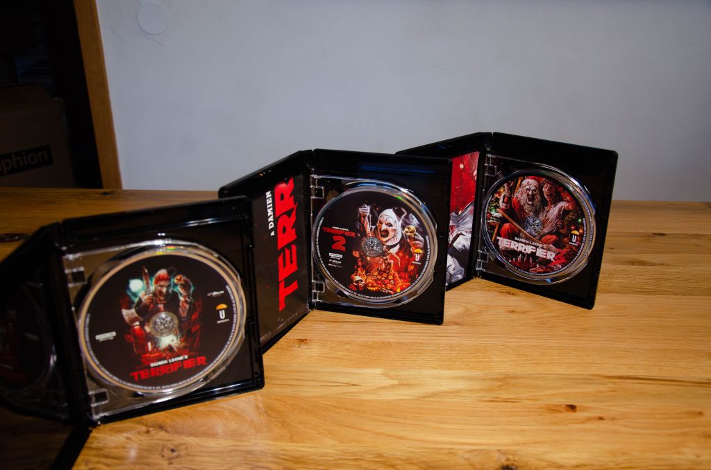 Kurz bevor Art the Clown in Ter­ri­fier 3 hier­zu­lan­de die Ket­ten­sä­ge im Heim­ki­no anwirft, lan­det bei uns das Art Attack — Ter­ri­fier Coll­ec­tion Box­set von Umbrel­la Enter­tain­ment im Brief­kas­ten. Und holy shit – das Ding ist ein Blut­bad an Extras!
