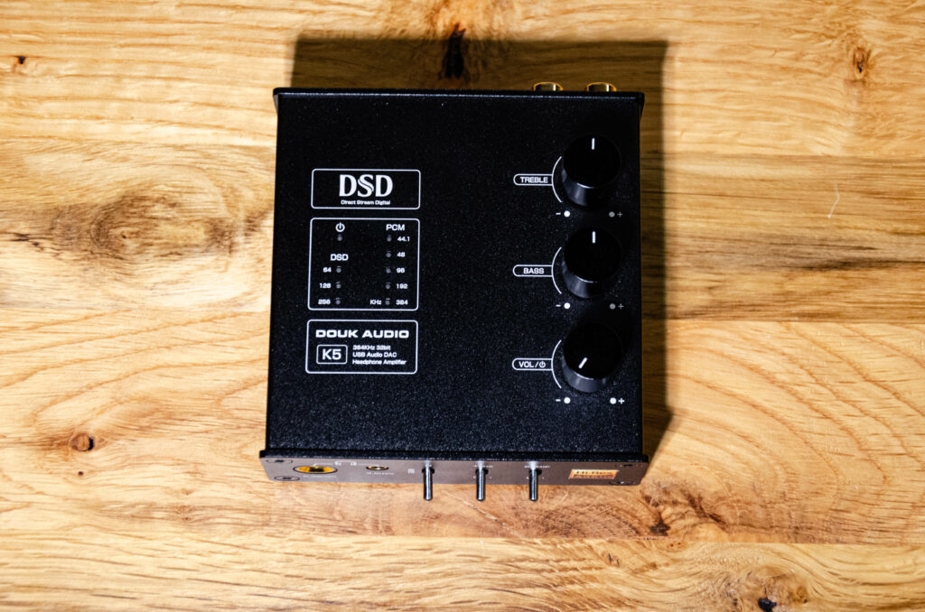 Ein besonderes Feature des Douk Audio K5 sind die Bass- und Höhenregler auf der Oberseite. Anders als bei vielen günstigen Geräten arbeitet dieser EQ bemerkenswert subtil und musikalisch. Statt die Musik zu verzerren oder zu vermurksen, erlauben die Regler eine feine Abstimmung: