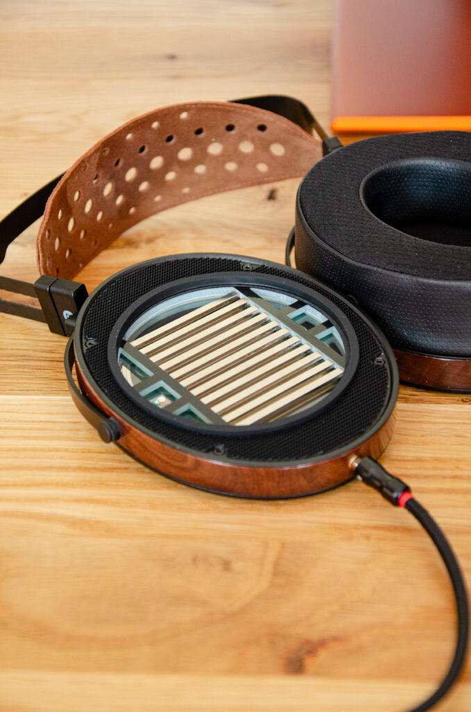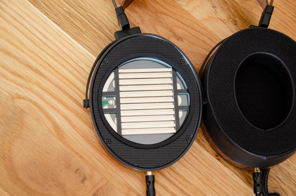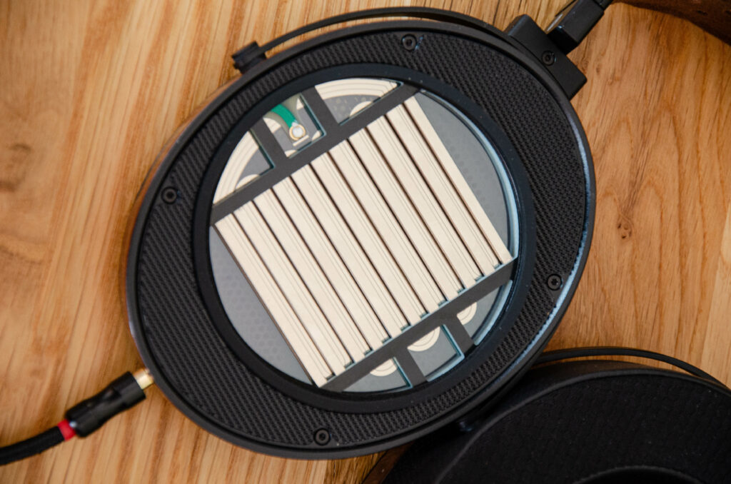 Jetzt aber! Ich habe es bisher vor lauter Begeisterung nur am Rande erwähnt: Planarer Magnetostat, was heißt das eigentlich? Hier sitzt keine „normale“ Lautsprechermembran, sondern ein ultradünner, gerade mal 2 µm starker „Film“, auf Spannung gehalten von beidseitig angeordneten Magnetarrays (insgesamt 44 N50-Magnete, je 22 pro Seite!). Durch diese spezielle Konstruktion sind Planare bekannt für präzise, extrem schnelle Treiberbewegungen.