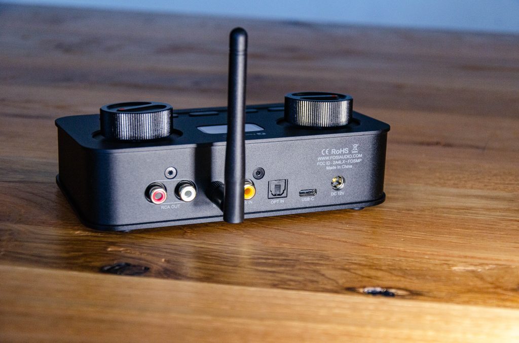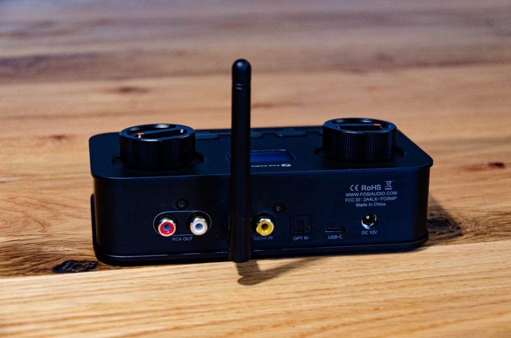 Via Bluetooth 5.0 unterstützt der Fosi Audio K7 die Codecs SBC, AAC, aptX, aptX HD und aptX LL, womit auch kabellose Verbindungen in nahezu verlustfreier Qualität möglich sind. Die mitgelieferte Antenne sorgt dabei für exzellente Reichweite und stabile Verbindung — in unserem Test konnten wir selbst durch mehrere Wände hindurch noch eine stabile Bluetooth-Verbindung halten.