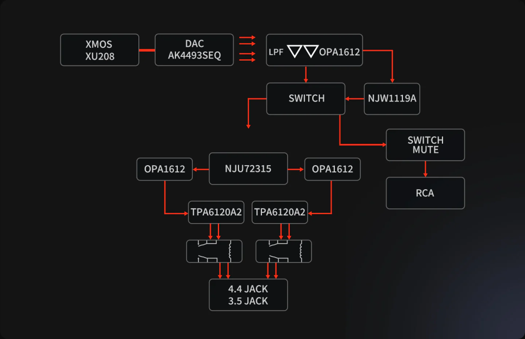 Im Balanced-Betrieb erreicht der Fosi Audio K7 einen Signal-Rausch-Abstand und Dynamikumfang von 121dB. Die maximale Ausgangsleistung liegt bei beeindruckenden L+R≥2100mW+2100mW — genug Power, um selbst anspruchsvolle Kopfhörer mühelos anzutreiben. Im Single-Ended-Betrieb bleiben immer noch respektable SNR 122dB und ein Dynamikumfang von 121dB erhalten, während sich die maximale Ausgangsleistung auf L+R≥600mW+600mW (32Ω/THD+N<1%) reduziert. Beeindruckende Werte, die selbst bei deutlich teureren DACs nicht selbstverständlich sind.