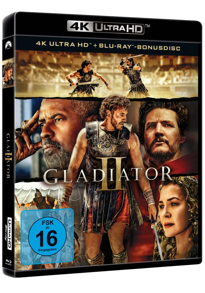 GLADIATOR II wird in 4K Ultra-HD mit HDR und Dolby Vision veröffentlicht und behinhaltet zusätzlich Dolby Atmos für die deutsche sowie englische Tonspur. Hier hoffen wir dass dieser immersive Soundtrack die Zuschauer mitten ins Geschehen transportiert – ob in die Schlachten der Arena, die politischen Intrigen Roms oder die emotionalen Momente der Charaktere. Jedes Schwertklirren, jeder Schrei und jede Nuance der Filmmusik von Harry Gregson-Williams wird zu einem Erlebnis, das die Grenzen des Heimkinos sprengt.