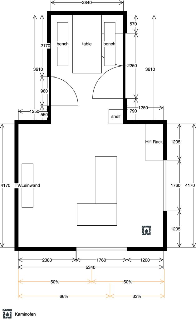 Allgemeiner Konsens ist hier, dass sich die Sitzposition optimalerweise im hinteren drittel des Raumes, bestenfalls auf der 33% Marke, befinden sollte.