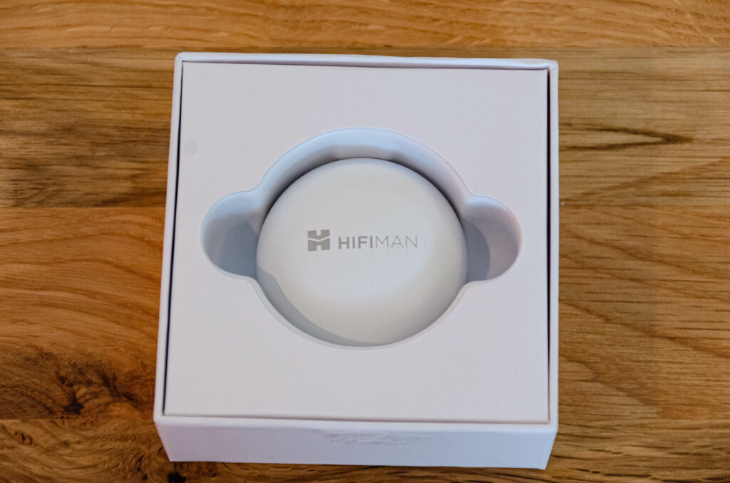 Das Unboxing der TWS450 ist ziemlich straightforward – keine Spielereien, kein fancy Marketing-Gedöns. Hifiman packt die Sachen in eine schlichte, aber hochwertige Verpackung. Beim Öffnen der Box springt einem sofort das kompakte Ladecase ins Auge – ein kleiner, matter Kieselstein, der problemlos in jede Hosentasche passt. Das Design ist clean und auf den Punkt gebracht, ohne unnötigen Schnickschnack.