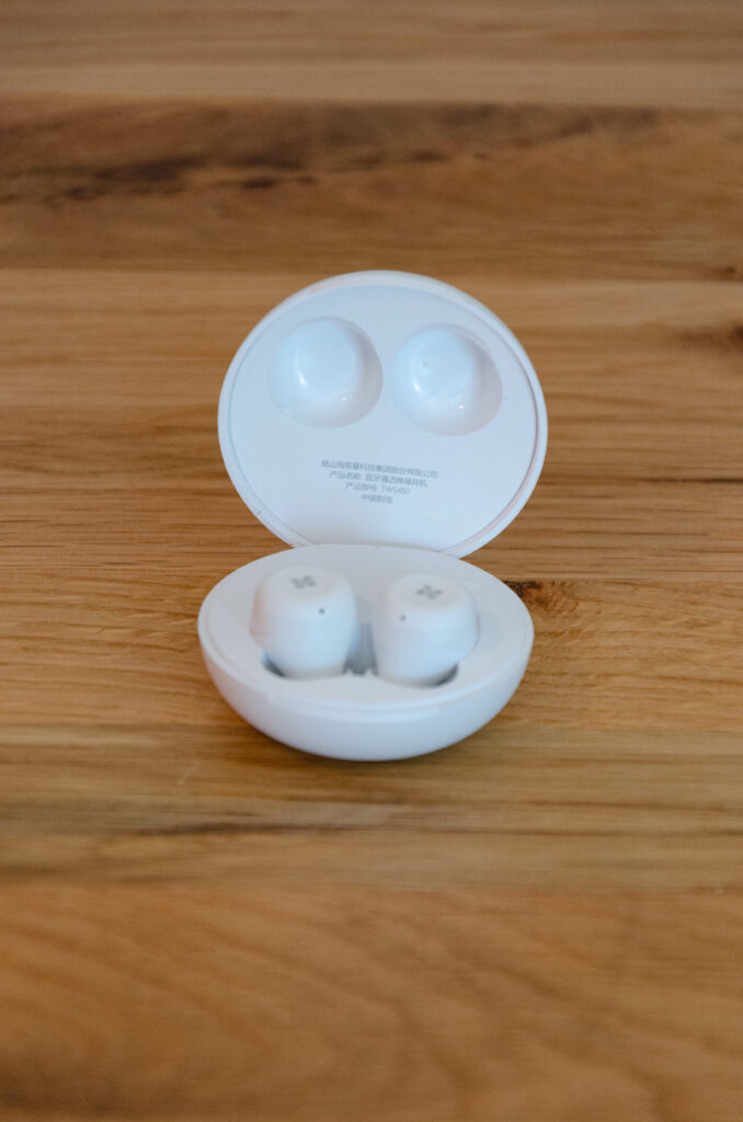 Die Earbuds selbst sind winzig und wiegen gerade mal 3,5 Gramm pro Stück. Das ist schon beeindruckend leicht – man vergisst fast, dass man sie trägt. Die Verarbeitung wirkt für den Preis absolut solide, auch wenn man natürlich keine Premium-Materialien erwarten darf.
