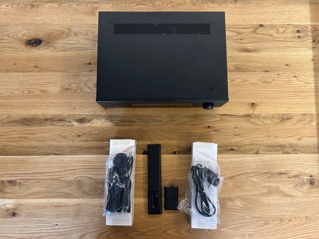 Zum Lieferumfang gibt’s nicht viel zu sagen: Netzkabel, Fernbedienung, Einmessmikro, 4x Trigger-Kabel, das Gerät selbst und eine Anleitung – mehr braucht’s auch nicht. Das eigentliche Highlight ist die innere Ausstattung: Die IOTAVX AVX 17 bietet satte 17 Kanäle, aufgeteilt in 13.4, womit Setups bis zu 7.4.6 möglich sind. Alle wichtigen Formate wie Dolby Atmos und DTS:X werden unterstützt – hier gibt’s keine Kompromisse.