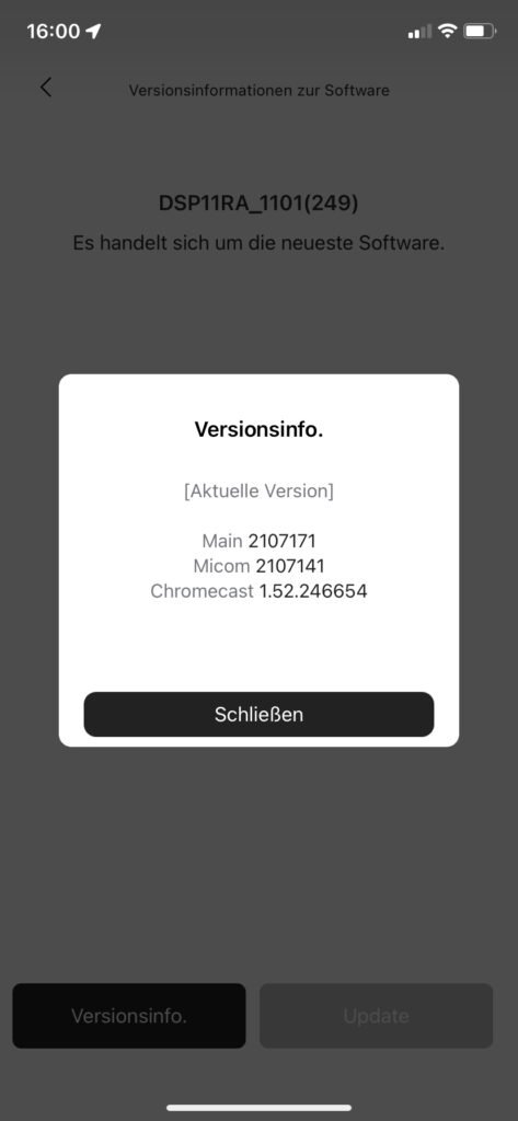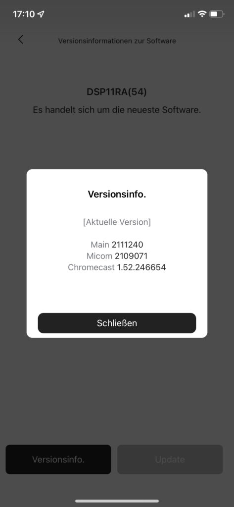 Leider haben hier unsere Probleme mit dem Testgerät angefangen. Geliefert haben wir die Soundbar mit folgender Firmware bekommen: