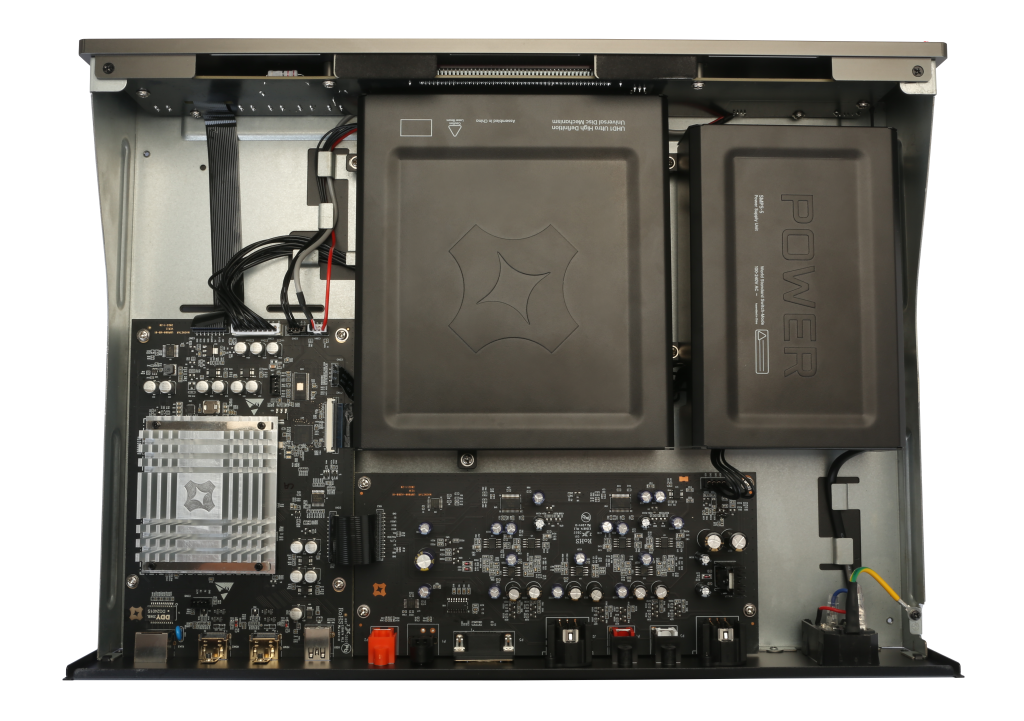 Beim Netzteil gibt es ein von den Magnetar Ingenieuren entwickelten 60W high-power low noise Transformator welcher noch einmal geschirmt in einem eigenen Gehäuse unter dem Deckel platziert ist. Das Herz des Systems bildet mal wieder der Mediatek MT8581, welcher schon in den Reavon Modellen verwendet wurde.