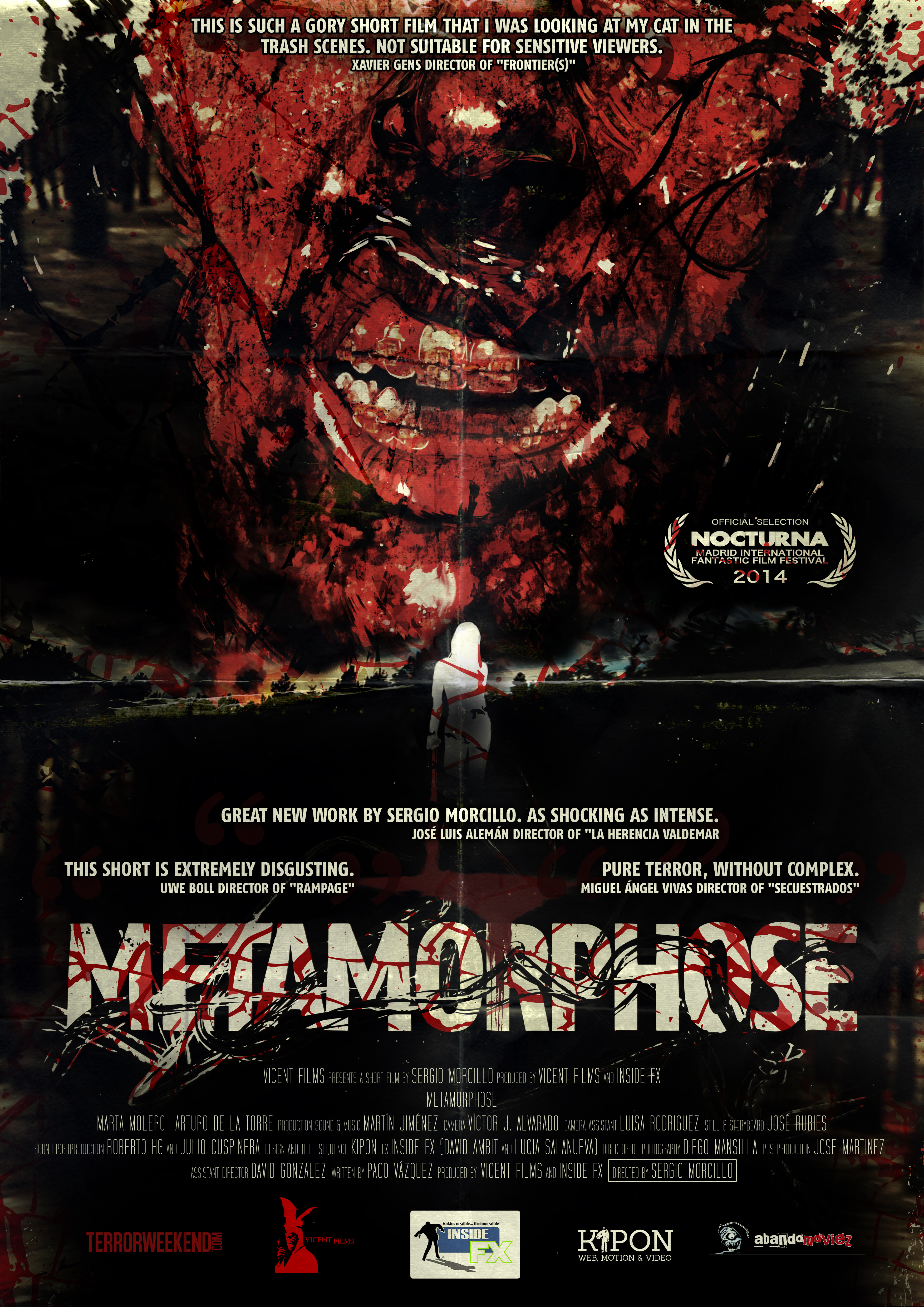 “M is for Metamorphose” aus dem letztjährigen Wettbewerb des zweiten Teils zu ABC’s of Death (wir berichteten) bekommt einen noch blutigeren Re-Cut spendiert und wird auf Festivals rund um den Globus gezeigt werden. Anbei für euch das Plakat. Hoffen wir mal, dass wir ihn in Deutschland auch zu sehen bekommen.