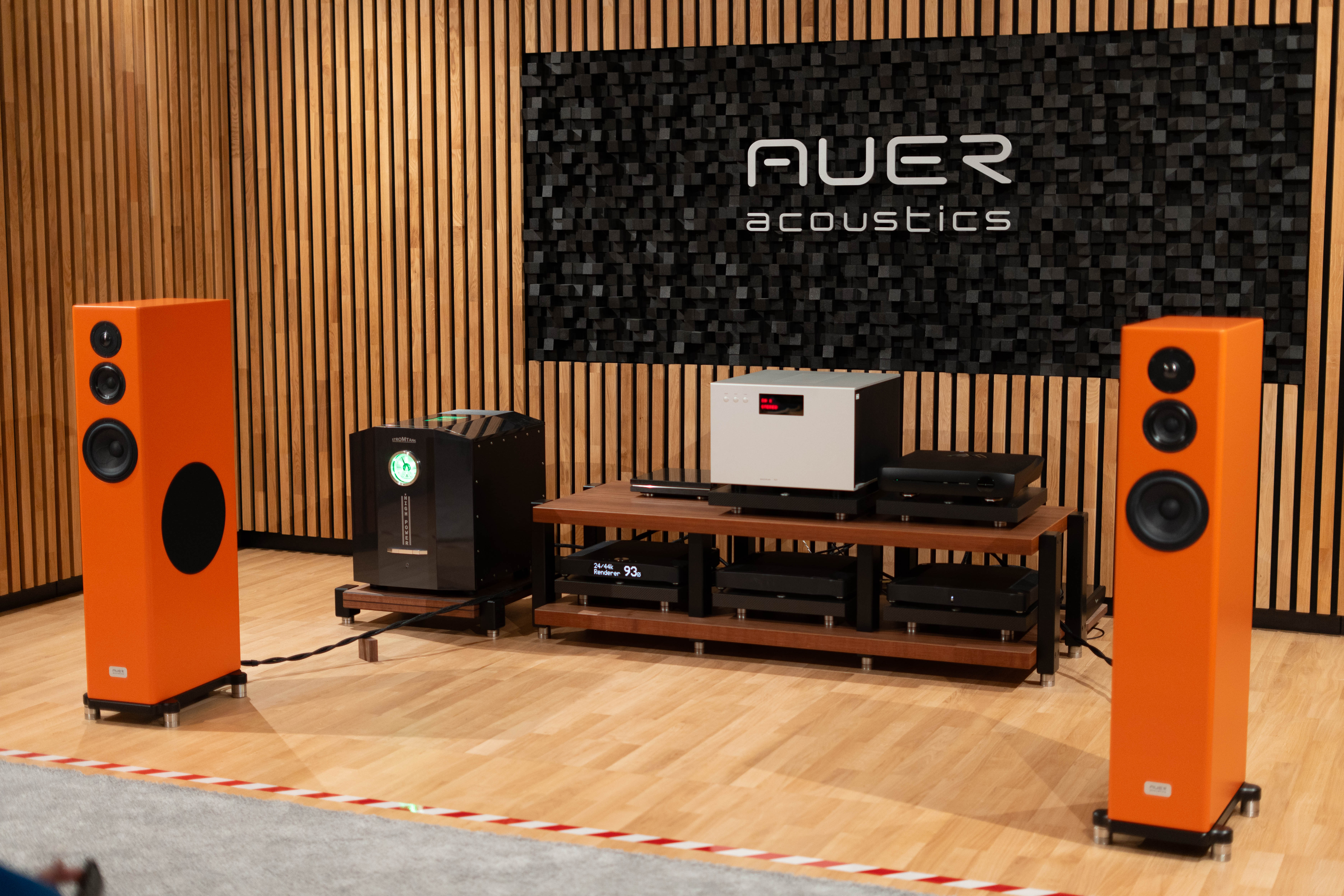 Auer Acoustics hat für mich den Vogel abgeschossen. Sie haben nicht nur eine tolle Präsentation ihres VERSURA V4 abgeliefert und damit einen rund 7 × 12 Meter großen Raum mit ordentlich Druck und sehr guter Kontrolle gefüllt. Sie haben außerdem einen unglaublichen Aufwand betrieben, indem sie den kompletten Raum mit eigenen Akustik‑Wänden und Paneelen in einen akustisch bearbeiteten Hörraum aus einem Guss verwandelt haben. Wer es nicht wusste, konnte leicht den Eindruck gewinnen, das Le Méridien hätte hier einen fest installierten Audio‑Raum – tatsächlich hat Auer Acoustics ihn selbst aufgebaut. Starke Leistung!