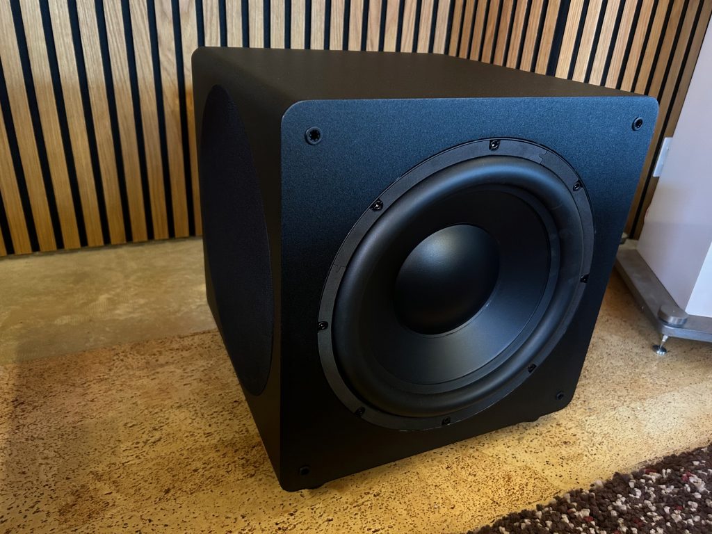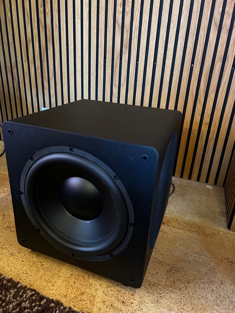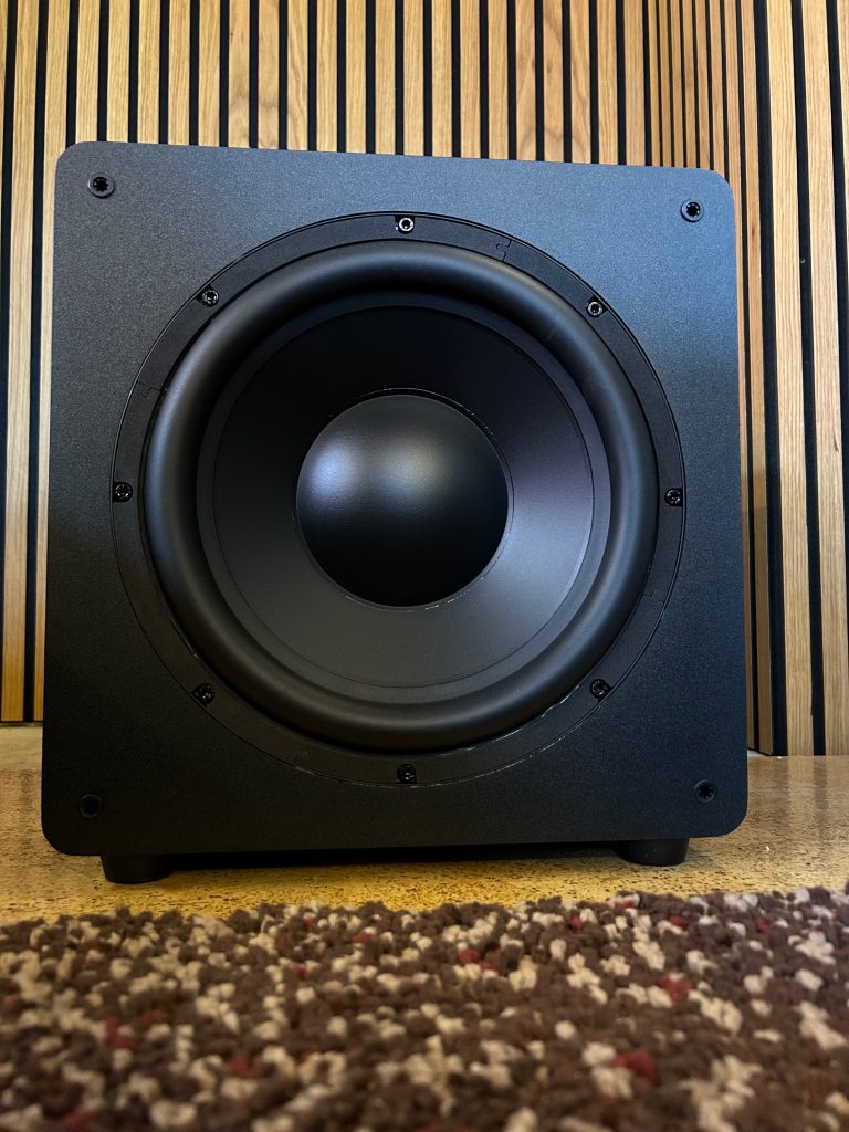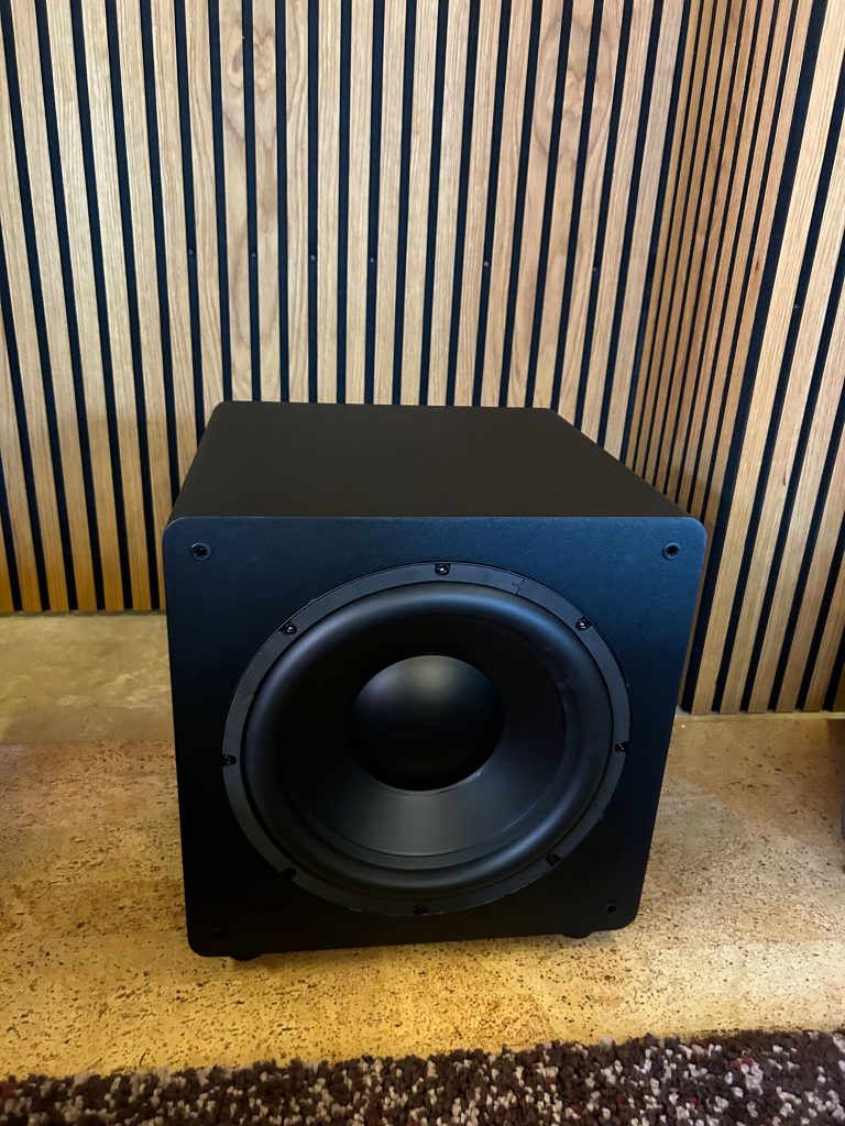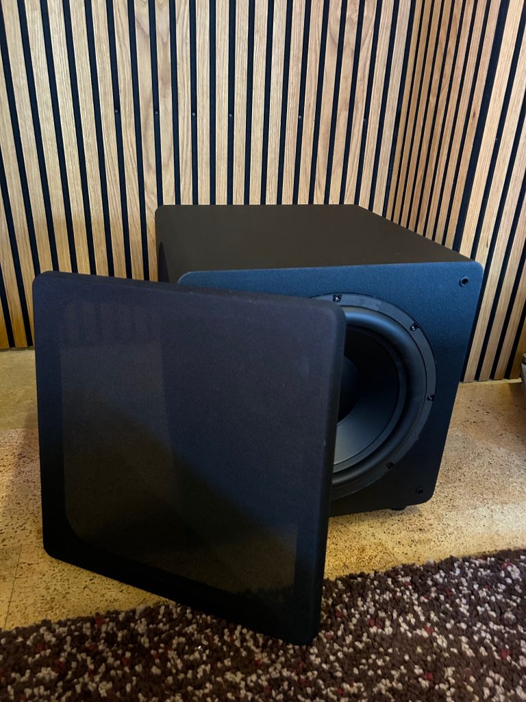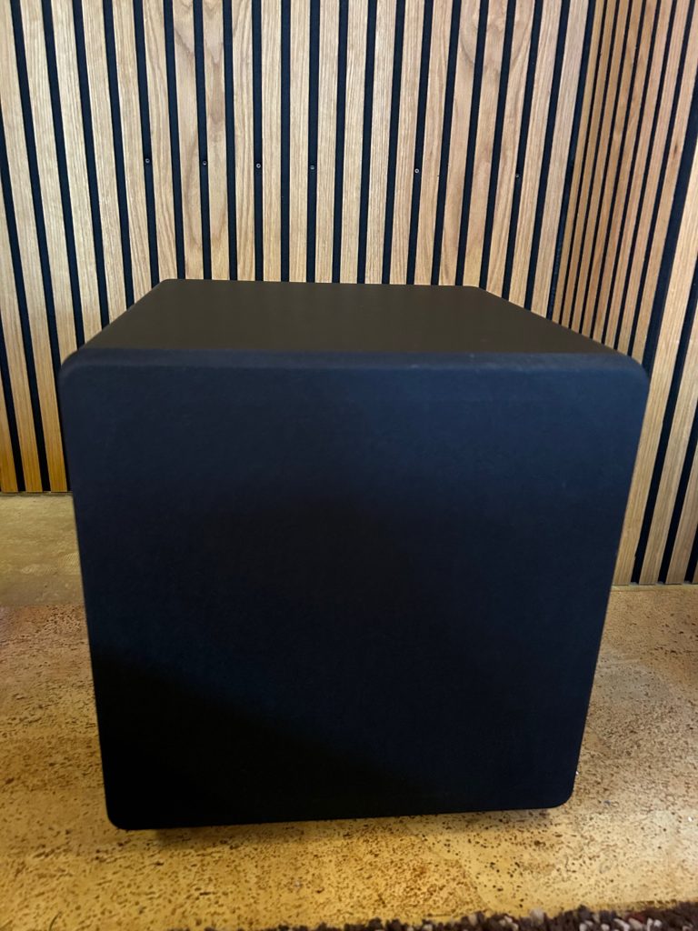 Frisch eingemessen und dem Raum angepasst macht das kleine Teilchen schon mal was es soll. Klein ist natürlich nicht unbedingt das Kredo, denn mit 400x400x400mm ist er jetzt nicht “mini”. Vom Frequenzgang ist der Subwoofer mit 24–160HZ ordentlich und ausreichend für ein kleines Wohnzimmer-Heimkino, aber eher weniger was für die dedizierte Heimkino-Höhle. Die 600 Watt Peak sind hier einfach beschränkend und schätzungsweise bis 16qm machen die ordenlich Druck, alles was größer ist, verliert er schon an Bedeutung. Die geschlossene Bauweise trägt natürlich dazu bei, das er weniger Druck an den Raum abgiebt, dafür aber schön flink spielt und so auch bei Musik Freude bereitet.