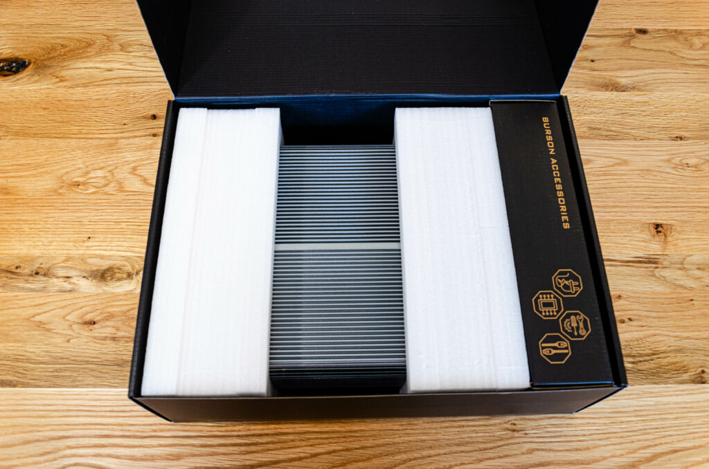WTF! Okay. Wenn man die Kiste so auf Bildern sieht, denkt man vielleicht, dass sie eine gewisse Größe und Gewicht hat, aber man ist nicht gefasst auf das, was in den schicken Kartons schlummert. Look und Feel der Verpackung ist Premium und die Unboxing‑Experience ebenfalls. Burson Audio versteht es, seine Kunden mit einem befriedigenden Auspackerlebnis zu begrüßen und macht direkt Lust darauf, die Kiste zu hören.