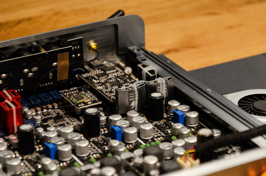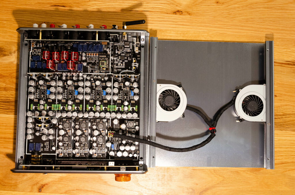 Was ich oben hatte vergessen zu erwähnen, ist: Der Conductor GT4 wird warm und ist aktiv gekühlt! Jedoch hört man von den Lüftern im Innern nix. Absolut nix. Da ist selbst der Anthem MRX740, der gerade im Wohnzimmer steht, lauter, und ihn würde ich nicht als wirklich richtig hörbar beschreiben.