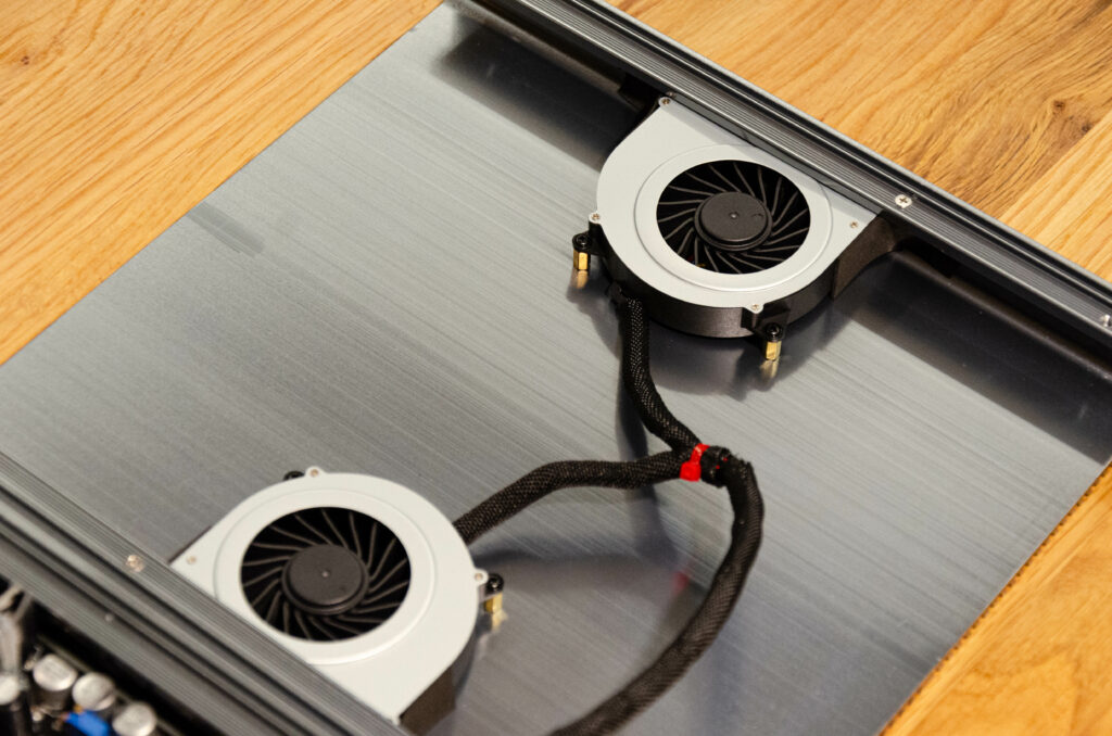 Die 10 Watt am Ausgang haben auch ihren Preis. So genehmigt sich der Kraftprotz im Idle schon satte 100 Watt Strom aus deiner Steckdose. Wer jetzt schon ein wenig Ahnung hat, wird direkt sagen: 100 Watt im Idle produzieren doch einiges an Wärme. Und damit liegt er richtig. Der Burson Conductor GT4 wird, sobald er eingeschaltet wird, sehr warm. Anfassbar, aber dennoch ist er eine kleine Heizung. Für mich als Bildschirmarbeiter eigentlich ein lustiges Gimmick. Sollte ich mal kalte Hände haben, lege ich diese einfach vorsichtig auf das Gerät und habe direkt warme Hände. (Ja, ich weiß, nicht jedermanns Sache, aber ein praktischer Nebennutzen.)