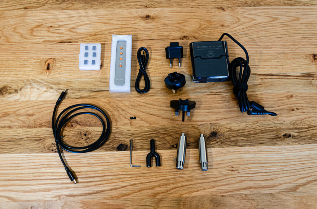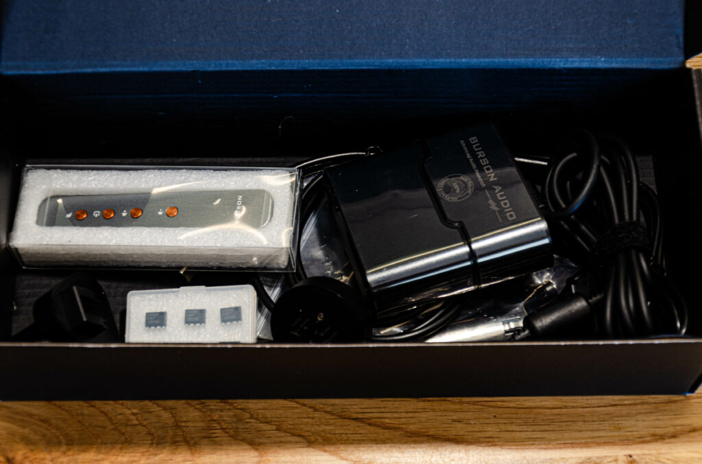 - Statt des Standard‑Netzteils lag in unserem Testgerät bereits der Burson Super Charger PSU 5A 24 V/5 A bei – ein Upgrade, das sich definitiv hören lässt.
