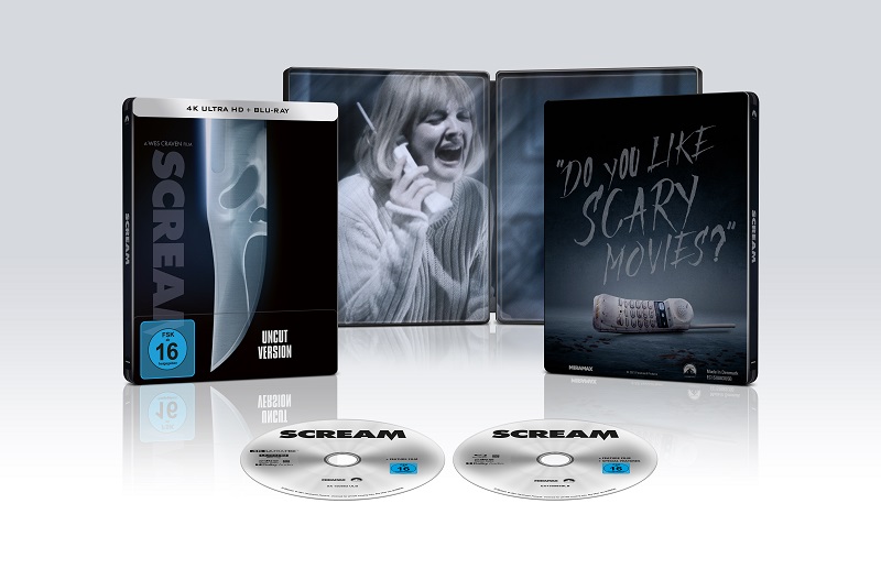 Scream wird als 25 anniversary edition im Steelbook erscheinen, inklusive obligatorischer Blu-Ray, welche hier nur mit deutschen Dolby Digital 5.1 was der alten Version entspricht. Das Bild hier ist jedoch in der restaurierten Version enthalten und sieht ebenfalls super aus. Ein wenig entsättiger zur UHD aber dennoch klasse. Das Bild ist hier dennoch spitze und kann sich sehen lassen.