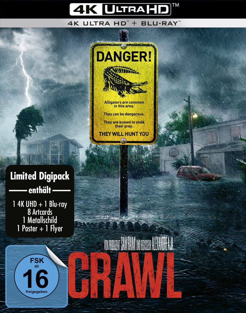 Mit Crawl (2019) wird sein neustes Werk den Weg auf die 4K Scheibe finden. Hier bring Paramount Pictures eine limitierte Slip-Case Edition mit einigen Extras wie Poster, 8 Artcards, 1 Metallschild und Flyer.
