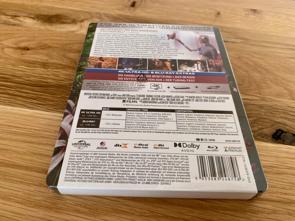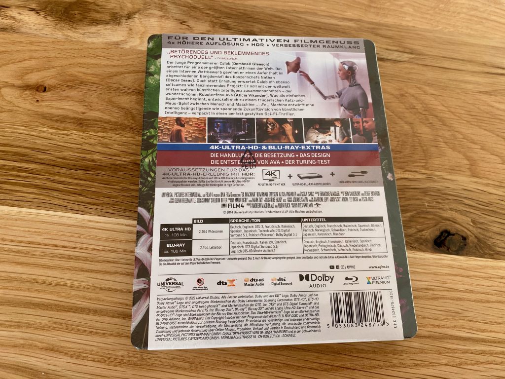 Wie man sehen kann, bekommt Ex_Machina mit der 4K Auswertung auch ein fettes Upgrade auf verlustfreien 3D Ton in deutsch und englisch in Form von DTS:X. Wir werden natürlich die Scheibe begutachten und euch mit einem Review beglücken. Also dürft ihr gespannt sein!