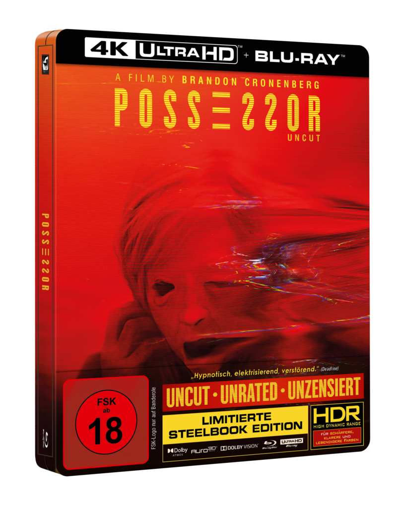 Possessor — Uncut zum Vorbestellen als Mediabook und Steelbook https://www.hifigeek.de/possessor-uncut-zum-vorbestellen-als-mediabook-und-steelbook/ https://www.hifigeek.de/possessor-uncut-zum-vorbestellen-als-mediabook-und-steelbook/#respond Tue, 16 Nov 2021 11:34:56 +0000 https://www.hifigeek.de/?p=5322 Brandon Cronenberg scheint Science-Fiction und Bodyhorror im Blut zu haben, als Sohn von David Cronenberg (Scanners, Videodrome, Die Fliege). Im Kino gab’s leider nur die zensierte R‑Rated Fassung zu sehen, doch jetzt bringt Turbine Medien GmbH Possessor am 11.02.2022 uncut auf DVD, Blu-Ray und 4K-Blu-Ray im Mediabook und limitieren Steelbook. Bei der Blu-Ray und der 4K-Blu-Ray gibt es verlustfreien Dolby-Atmos Sound. Auro3D mit 13.1 gibt es bei der 4K-Blu-Ray noch ob top!