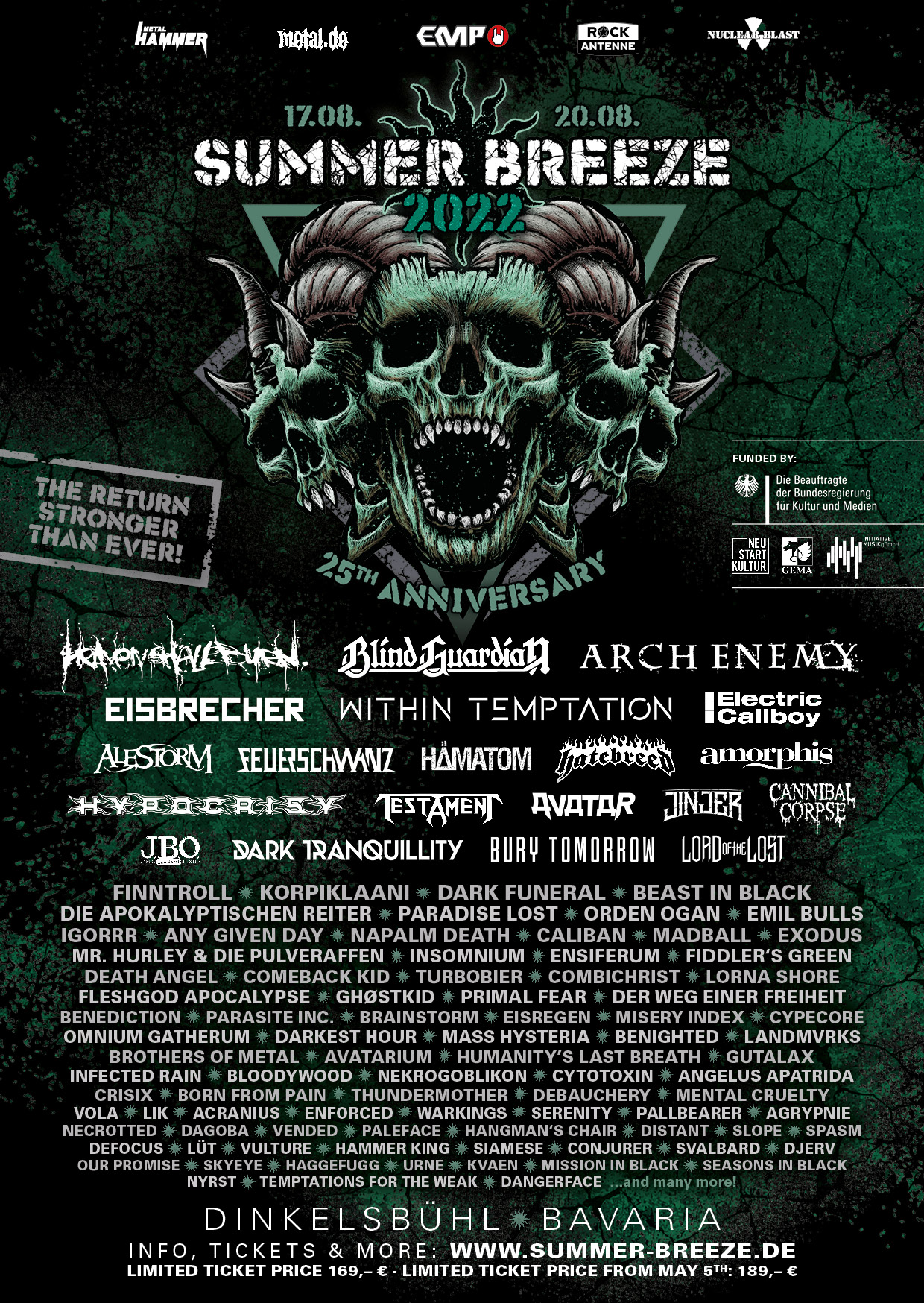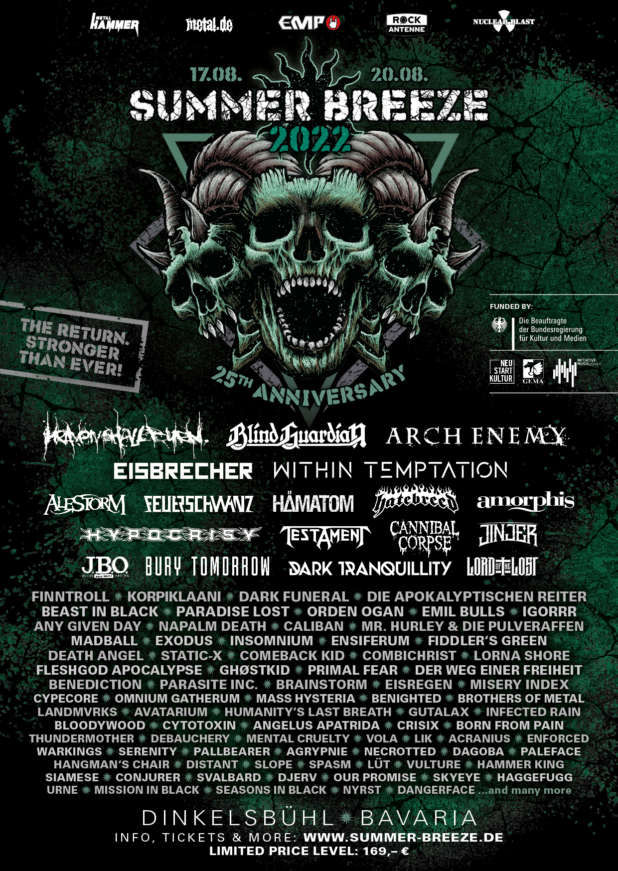 Festivals·13. April 2022Summer Breeze 2022 — Neuzugänge, Absagen und ausverkaufte TicketsEs scheint ja langsam Bewegung in die Festival-Szene zu kommen. Eine Beschränkung nach der Anderen ist gefallen und bereitet den... Weiterlesen