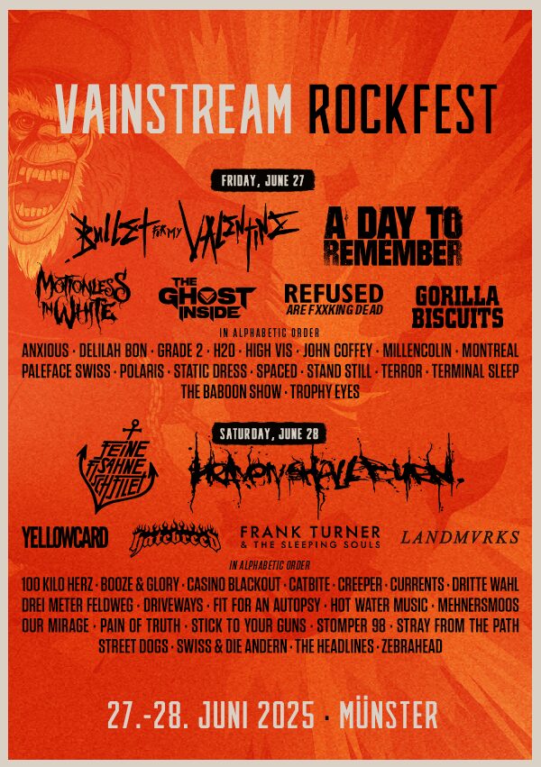 News·14. Mai 2025Das Vainstream Rockfest lädt zur Opening Night mit Crossfaith und mehrDas Vainstream Rockfest geht 2025 in die Vollen: Nicht nur, dass das Festival jetzt an zwei Tagen abgeht – für... Weiterlesen