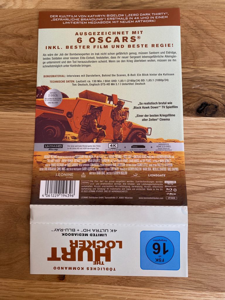Alles in allem haben wir mit dem The Hurt Locker Mediabook ein wertiges und edles Update der ein wenig in die Tage gekommenen Blu-Ray. Besseres Bild allemal, auch wenn der fehlende englische Atmos Ton ein wenig das Haar in der Suppe ist.