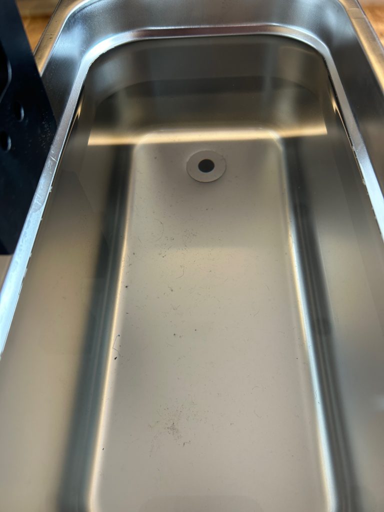 Nachdem alle Platten sauber waren, an das reinigen eben jenen Geräts. Durch den praktischen Hahn an der Unterseite mit dem Schlauch war es aber gänzlich einfach. Ich habe quasi alles wieder zurück in meinen Kanister, in welchem ich das destillierte Wasser gekauft habe, laufen lassen. Wie oben erwähnt natürlich gefiltert, damit die Flüssigkeit für meine nächste Waschung ready2go ist. Das war wirklich ein Kinderspiel. Danach schnell ausgewischt das Gerät, sieht es gleich wie neu aus. Damit halten sich die Nacharbeiten wahrlich in Grenzen.